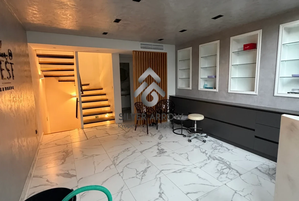 Επαγγελματικός χώρος στην καρδία της Γλυφάδας με μεγάλο σημείο προβολής, έχει έκταση 110 τ.μ. και κατανέμεται σε 3 επίπεδα υπόγειο, ισόγειο και 1ο όροφος.