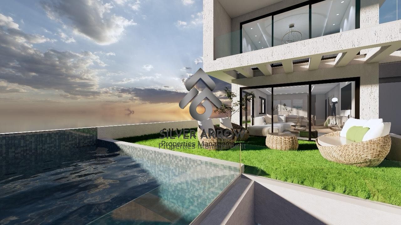 Η μεζονέτα είναι διαμπερές, διαθέτει ανελκυστήρα, αποθήκη, ιδιωτικό κήπο με πισίνα και υπόγεια θέση στάθμευσης.