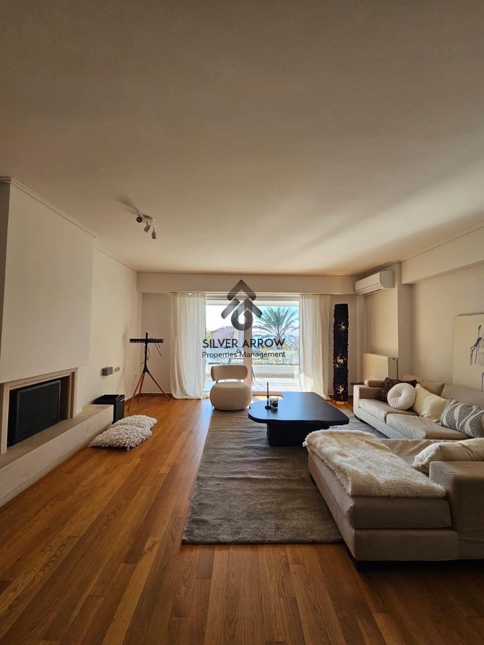 Luxurious apartment in a residential area in the Voula area with sea view and near the central square, has an area of ​​167 sq.m. and is located on the 2nd floor.
