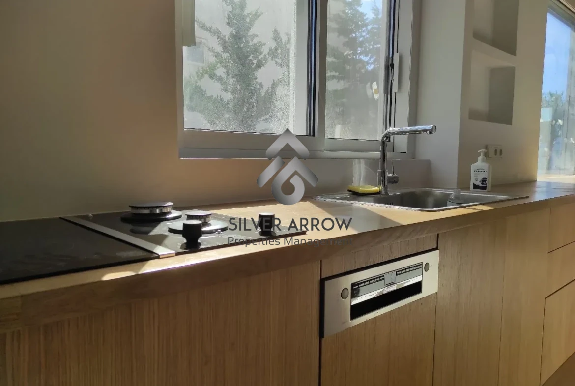Bright apartment in a residential area in the Voula area near the school and central square, has an area of 105 sq.m. and is located on the 2nd floor.