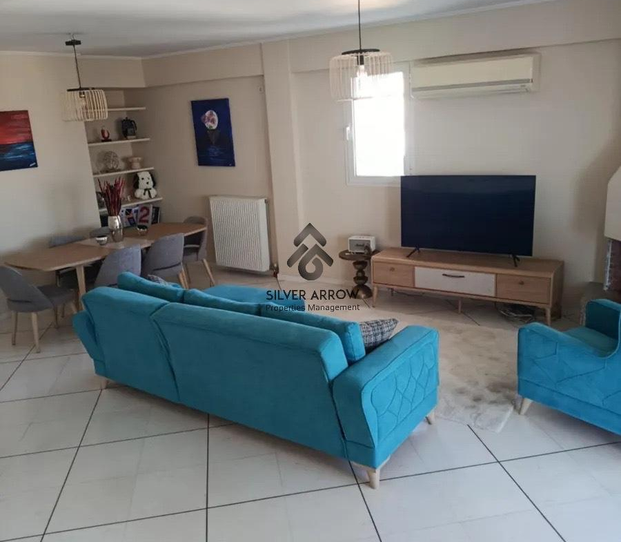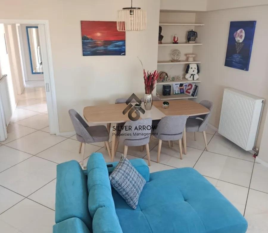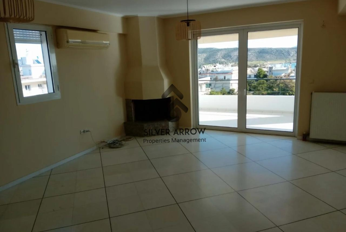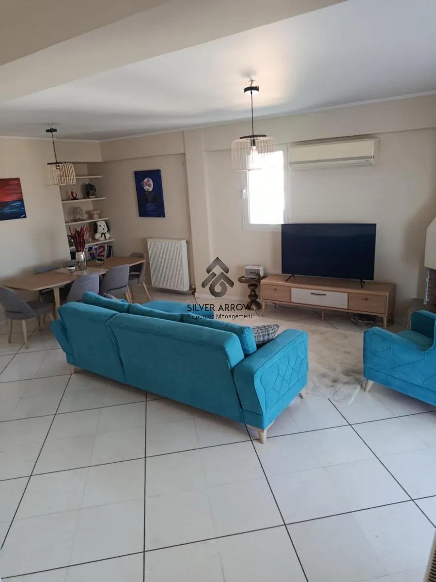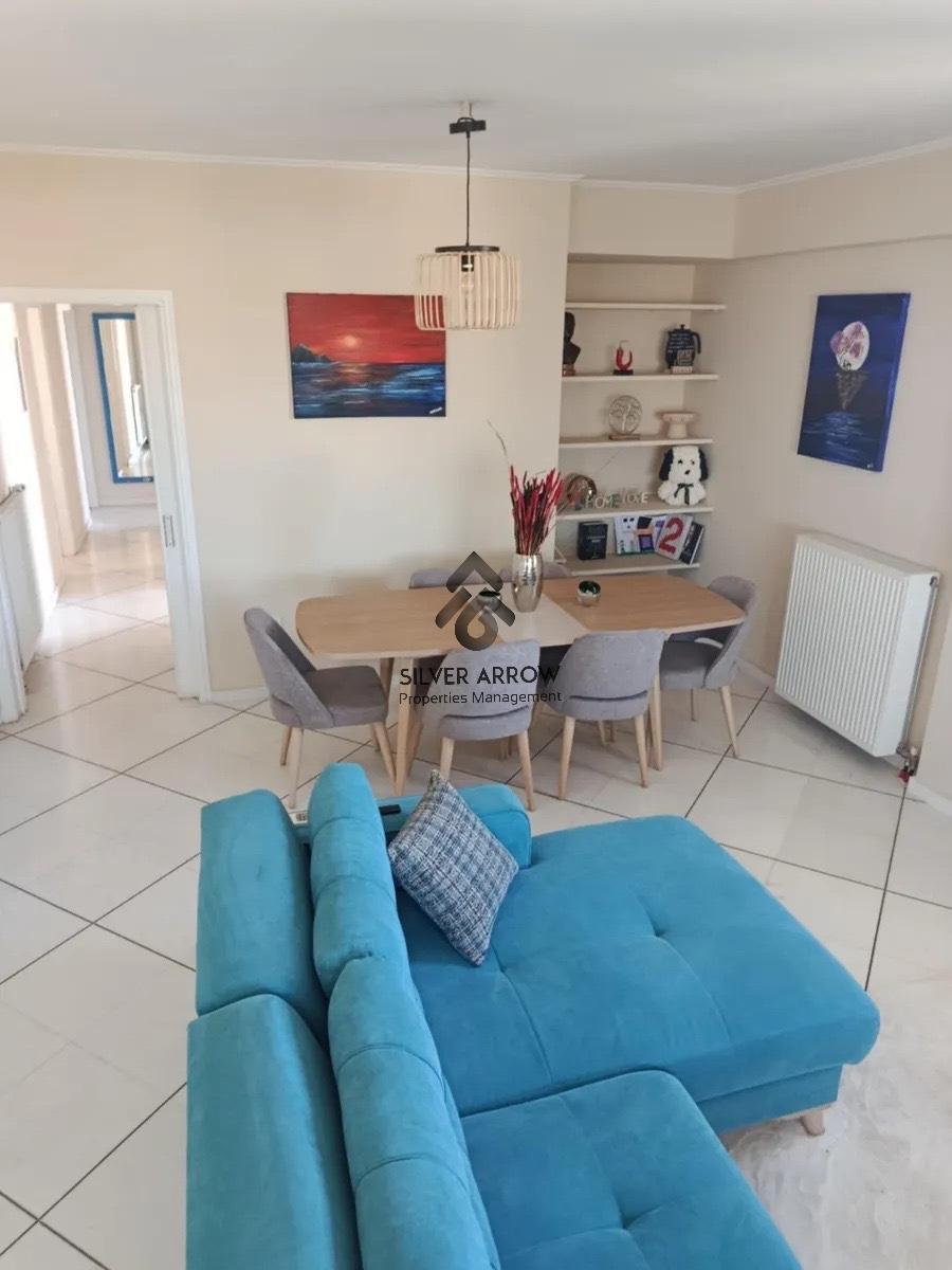 Bright apartment in a residential area in the Varkiza area with unlimited sea views, has an area of 106 sq.m. and is located on the 4th floor.