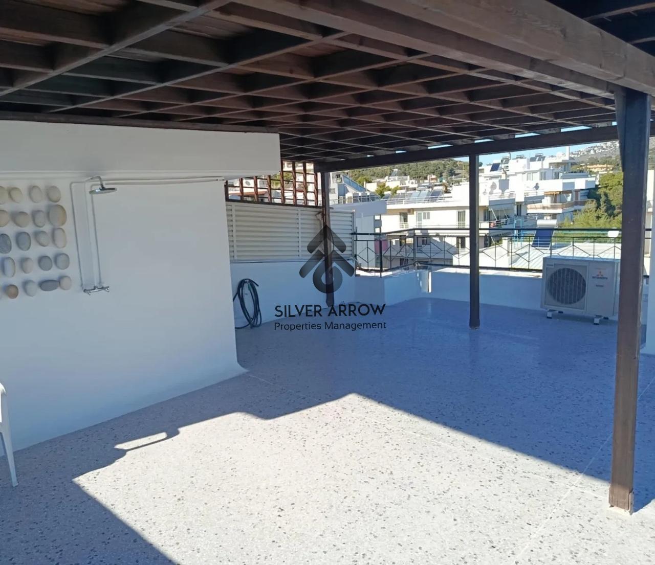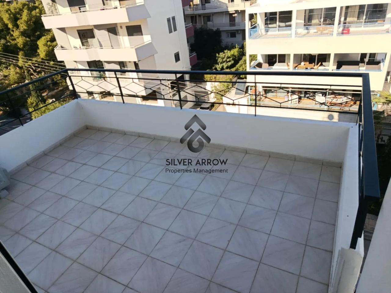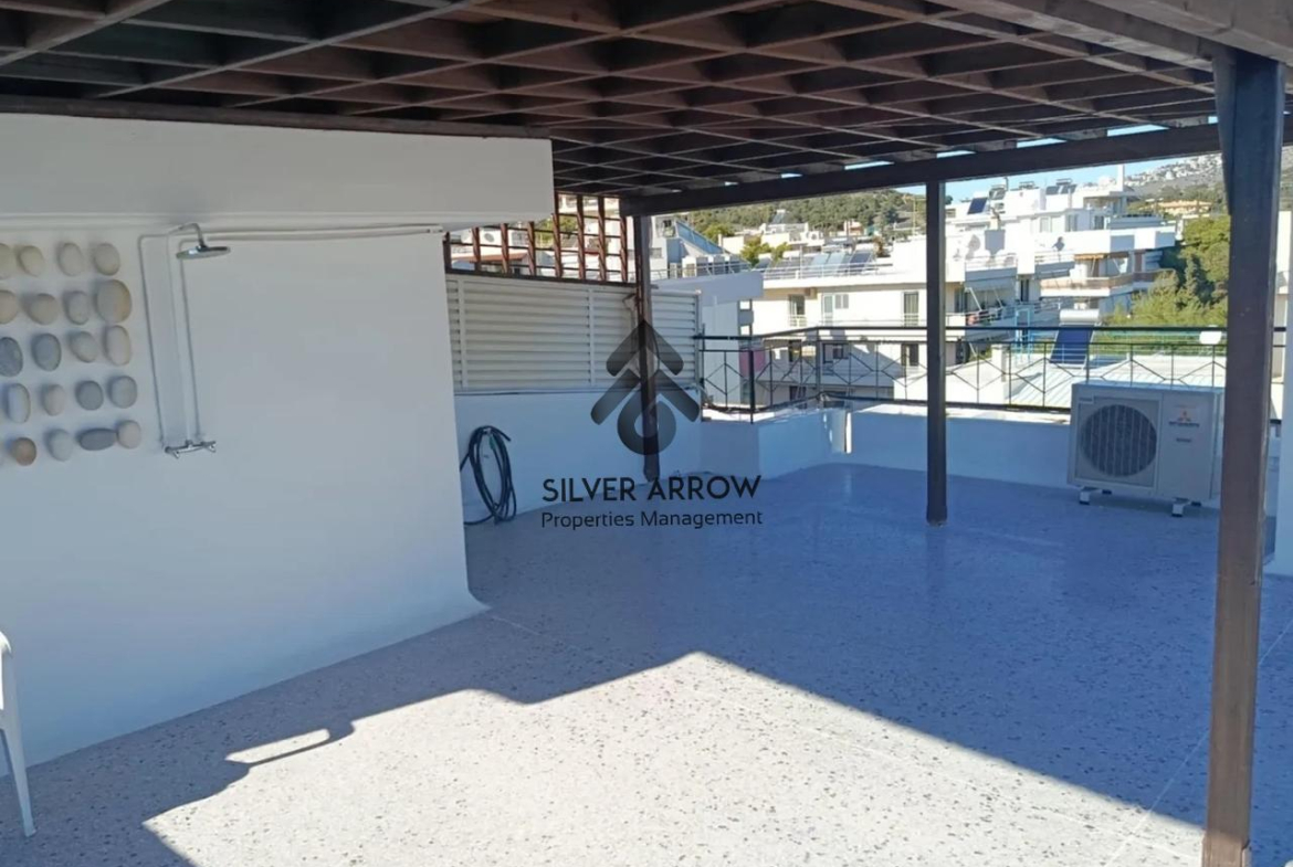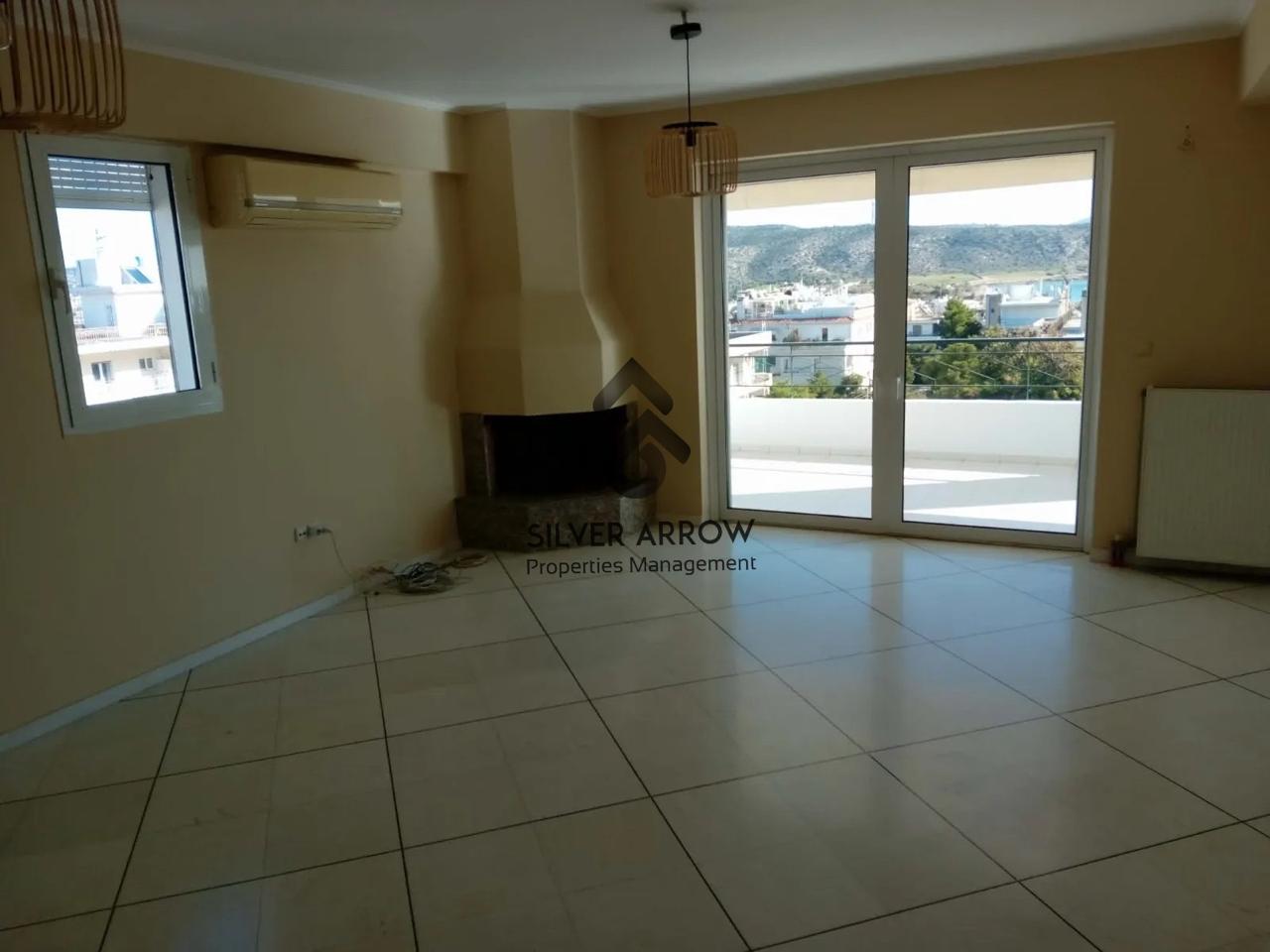 Bright apartment in a residential area in the Varkiza area with unlimited sea views, has an area of 106 sq.m. and is located on the 4th floor.