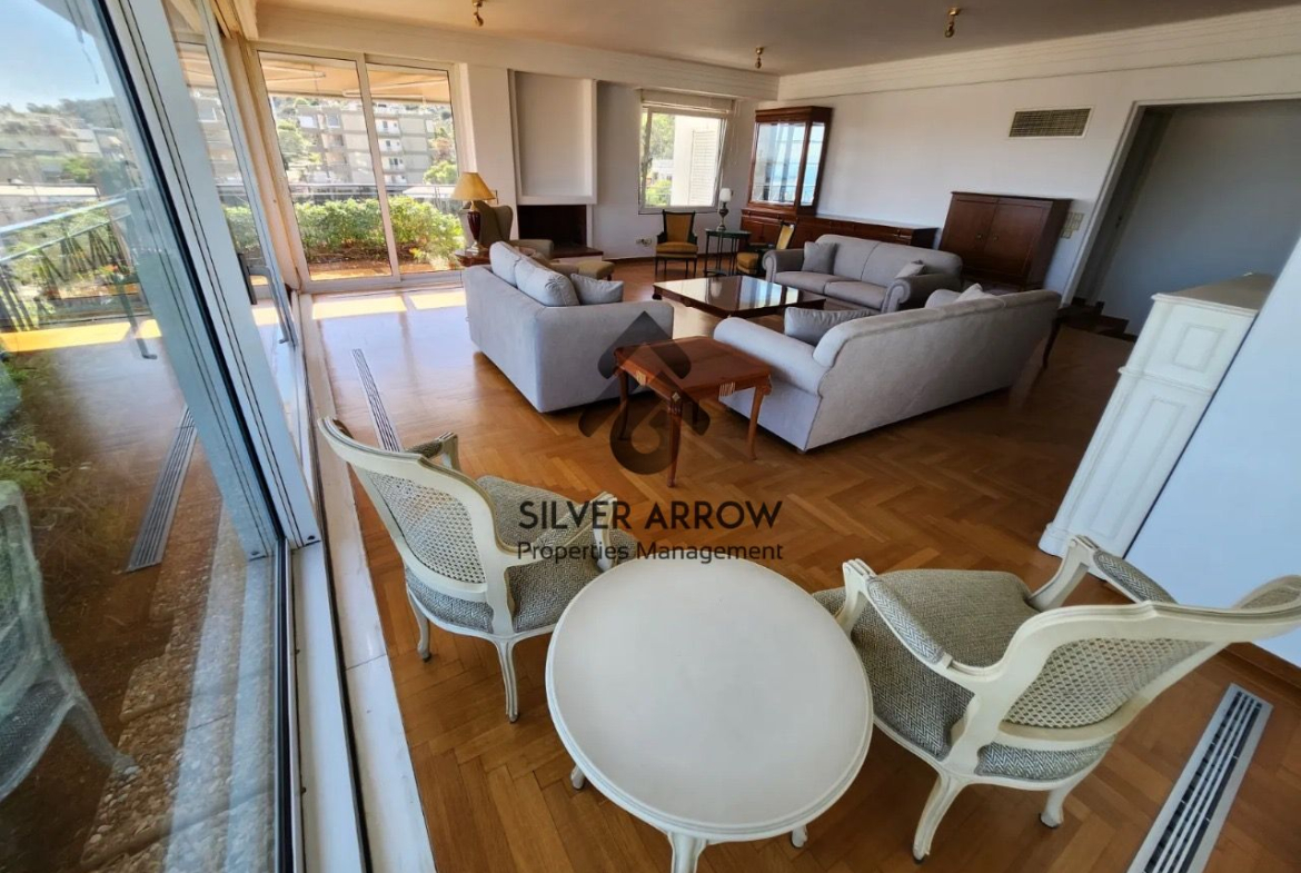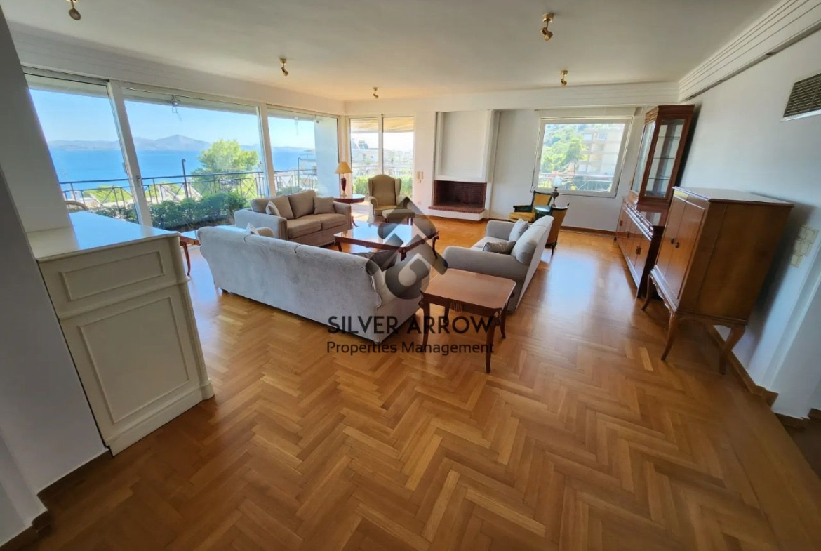 Apartment in a residential area in the Varkiza area with unlimited sea views and close to the market, has an area of 175 sq m and is located on the 5th floor.