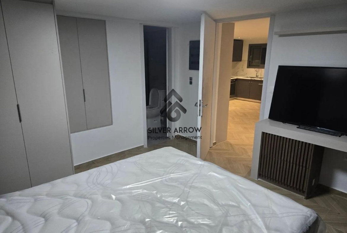 The apartment is airy, has a lift and is fully furnished.