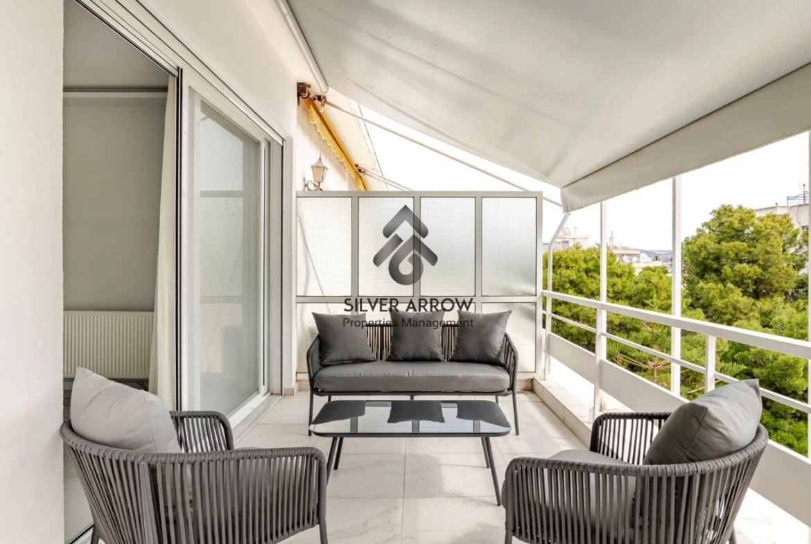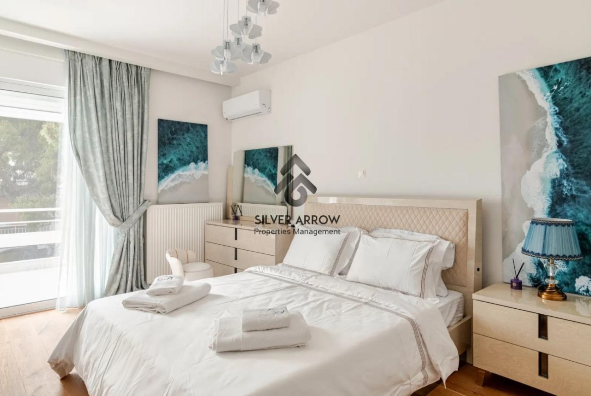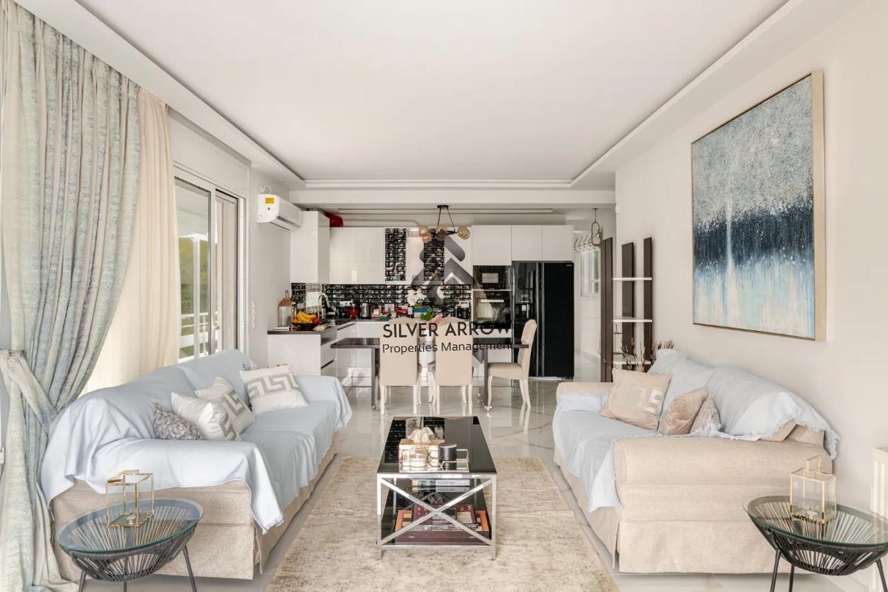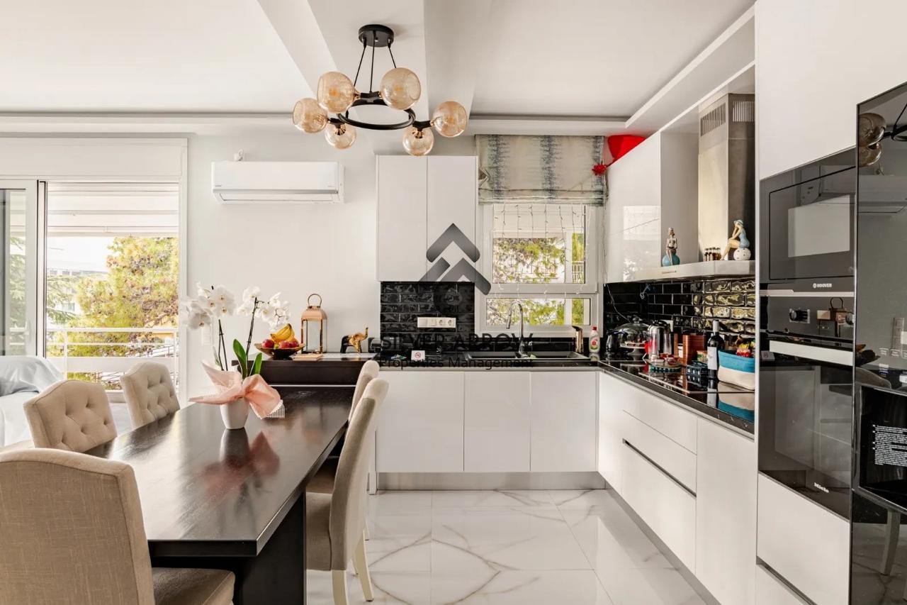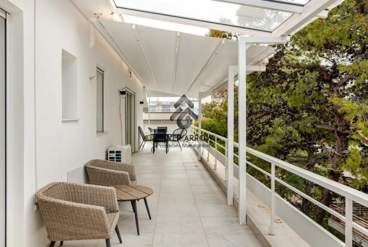 Unique apartment in the most beautiful area of the southern suburbs in the area of Vouliagmeni 150 meters from the sea and near the central square, has an area of 85 sq.m. and is located on the 4th floor.