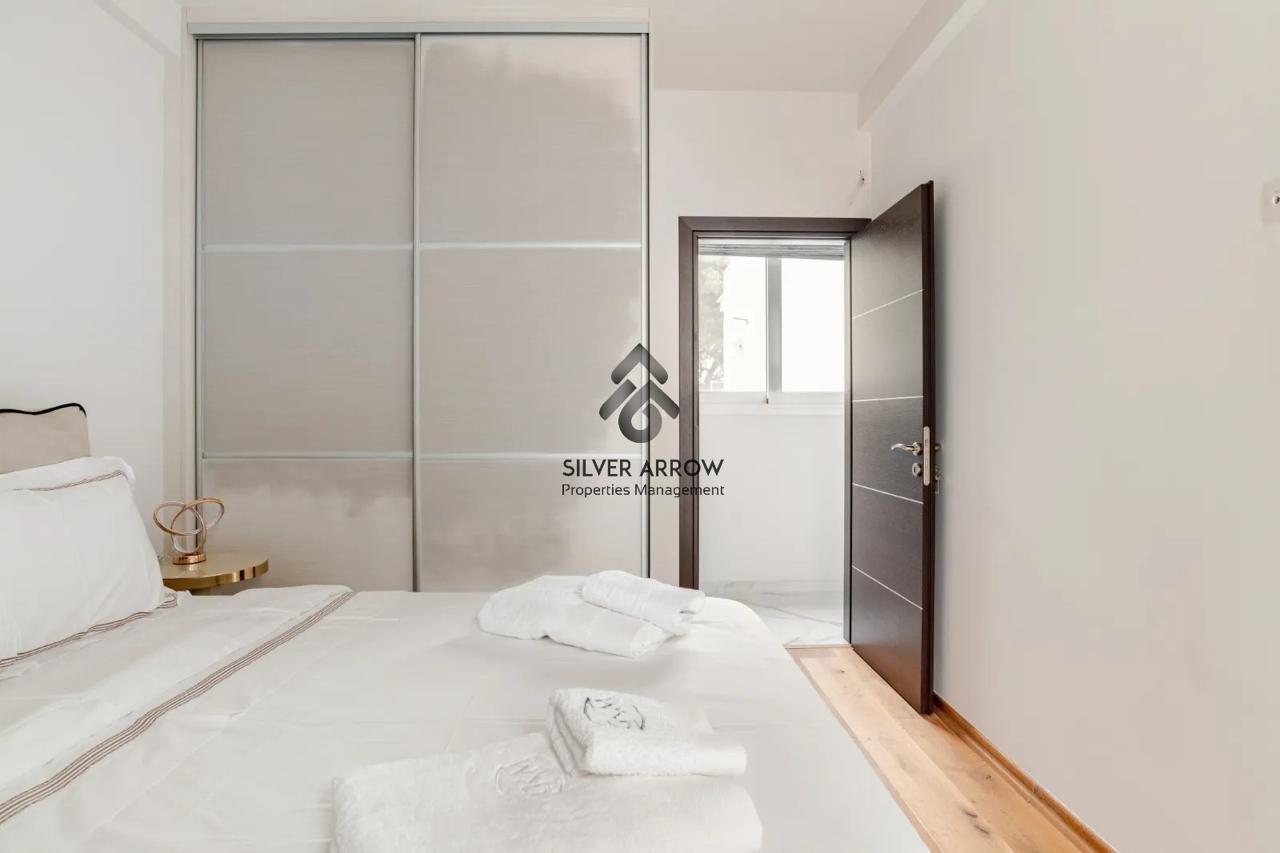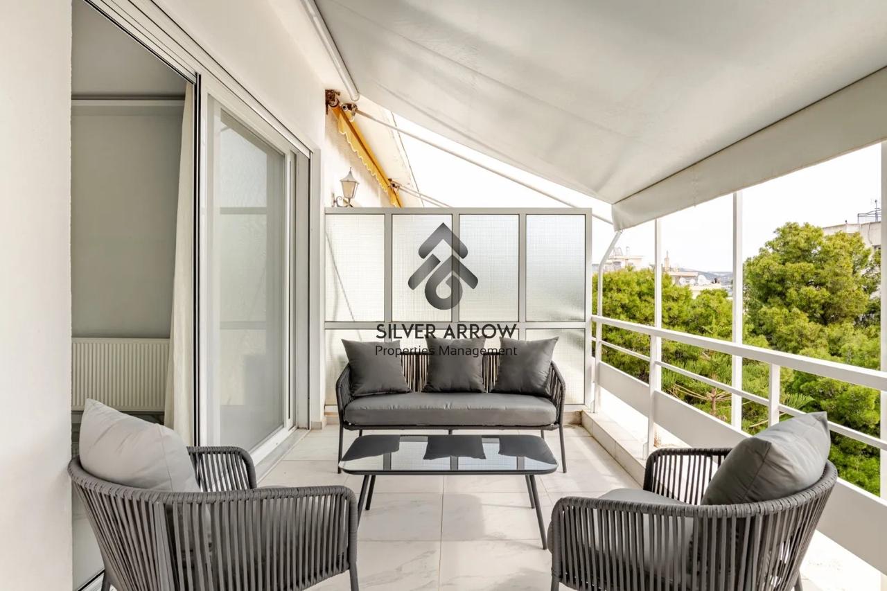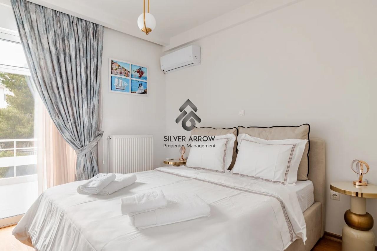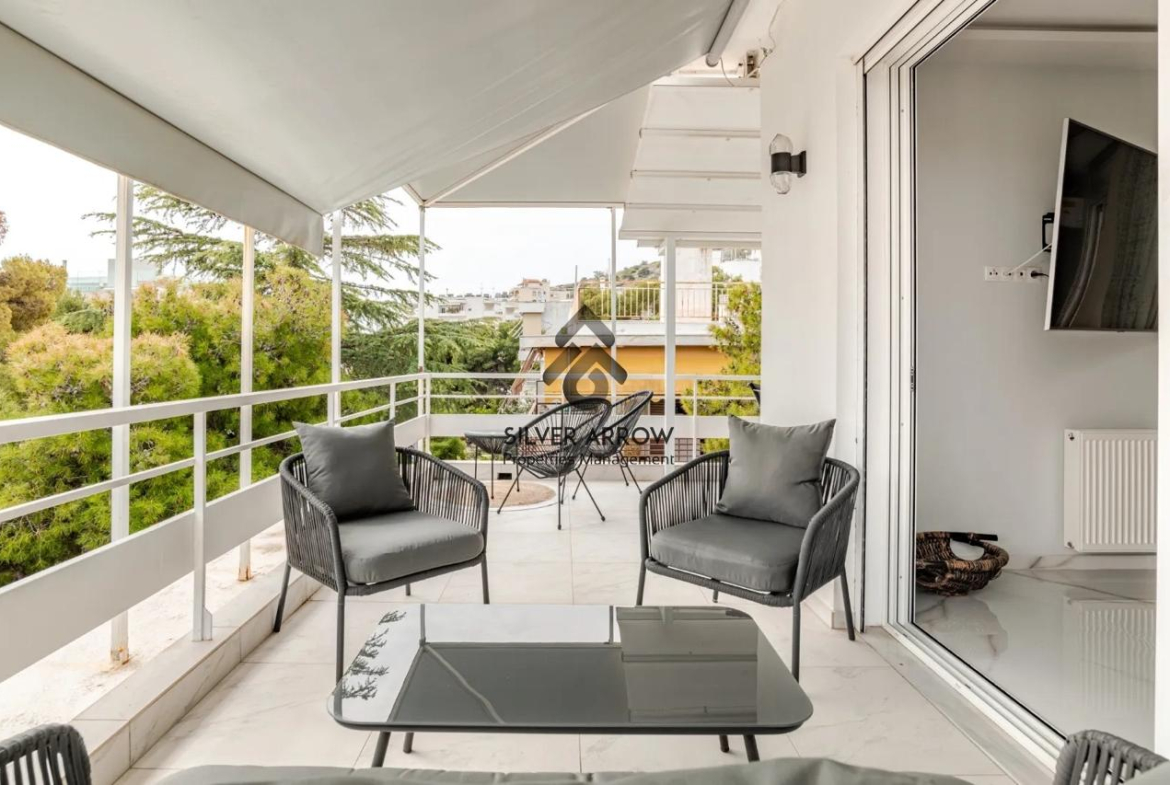 Unique apartment in the most beautiful area of the southern suburbs in the area of Vouliagmeni 150 meters from the sea and near the central square, has an area of 85 sq.m. and is located on the 4th floor.