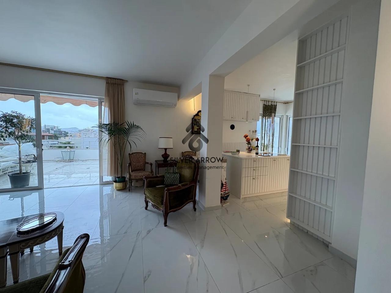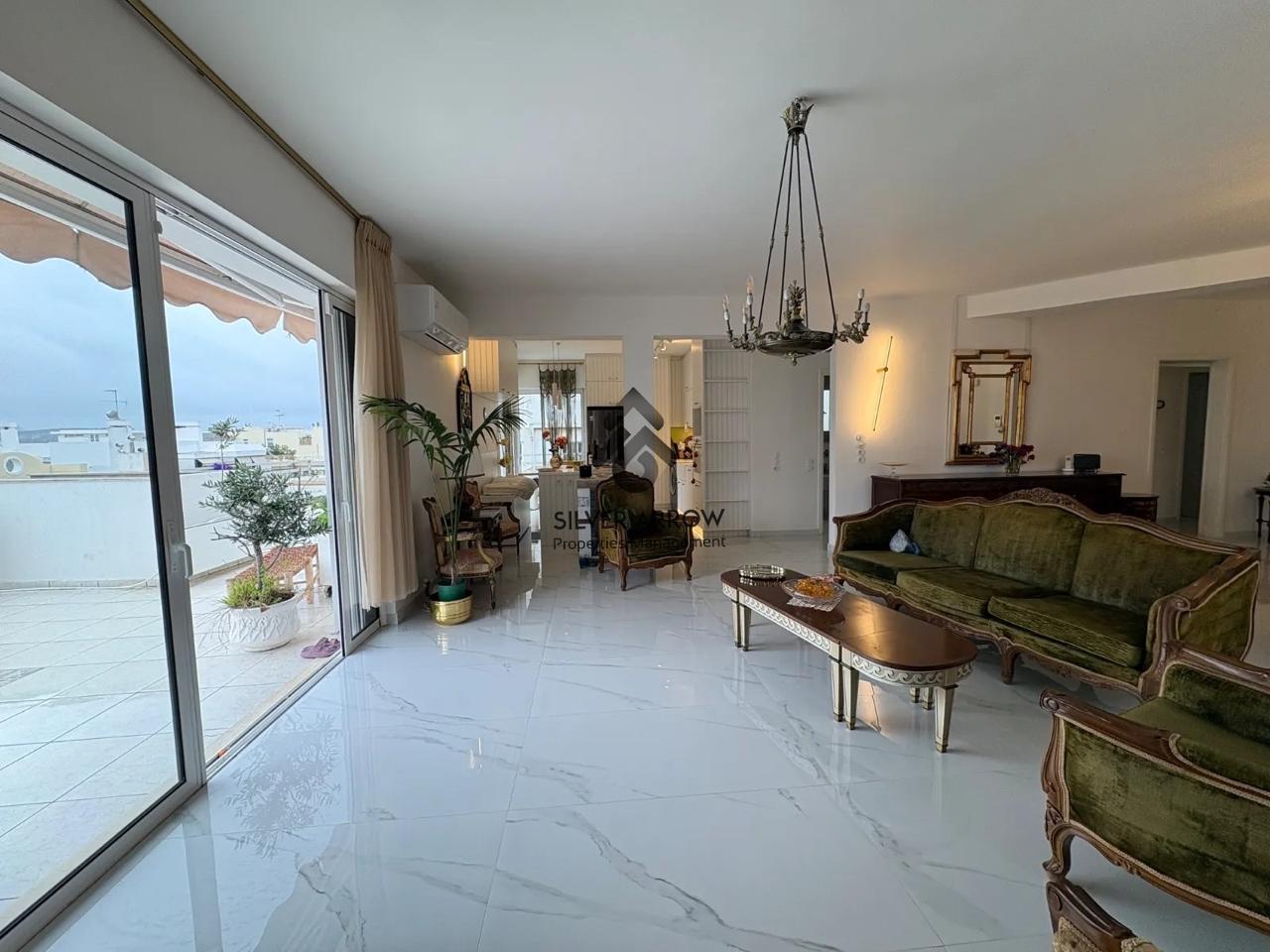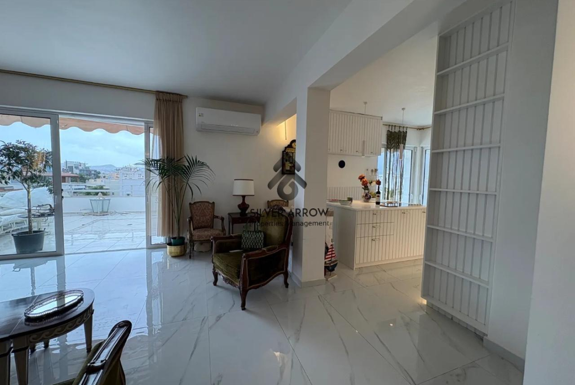 Apartment in a residential area in the Varkiza area 100 meters from the sea and close to all amenities, has an area of 130 sq.m. and is located on the 4th floor.