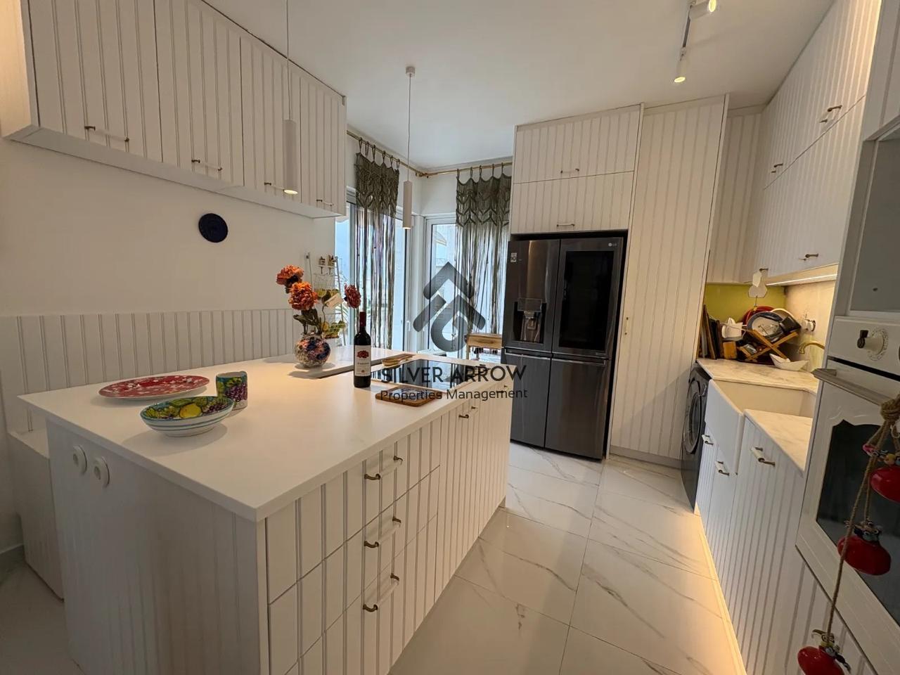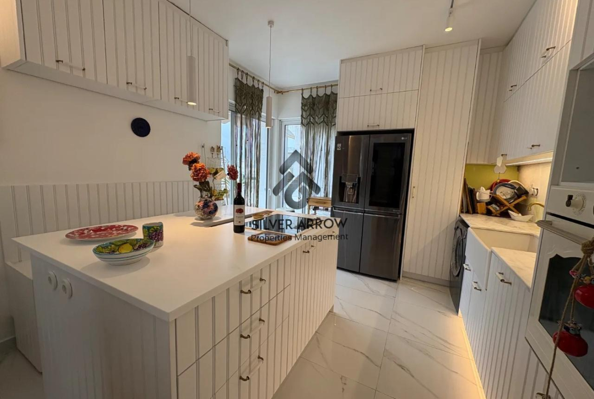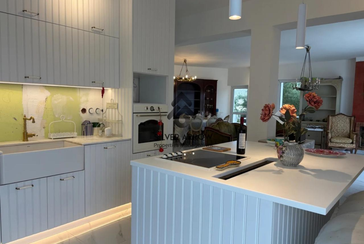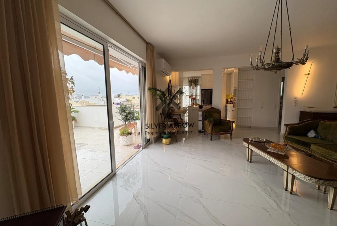 Apartment in a residential area in the Varkiza area 100 meters from the sea and close to all amenities, has an area of 130 sq.m. and is located on the 4th floor.