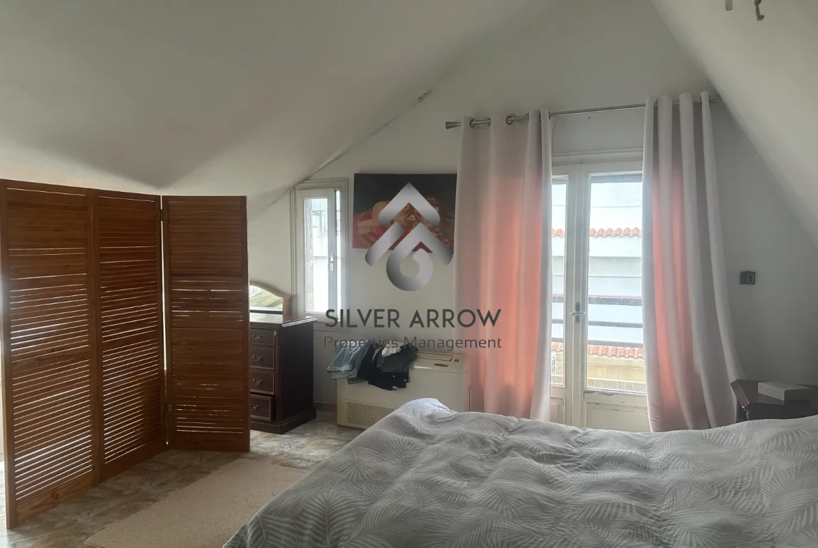 The maisonette is bright, has a storage room, parking space and a private garden with a swimming pool.