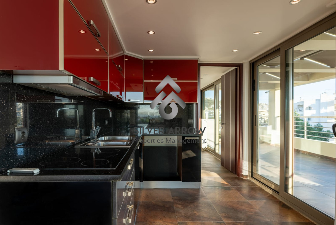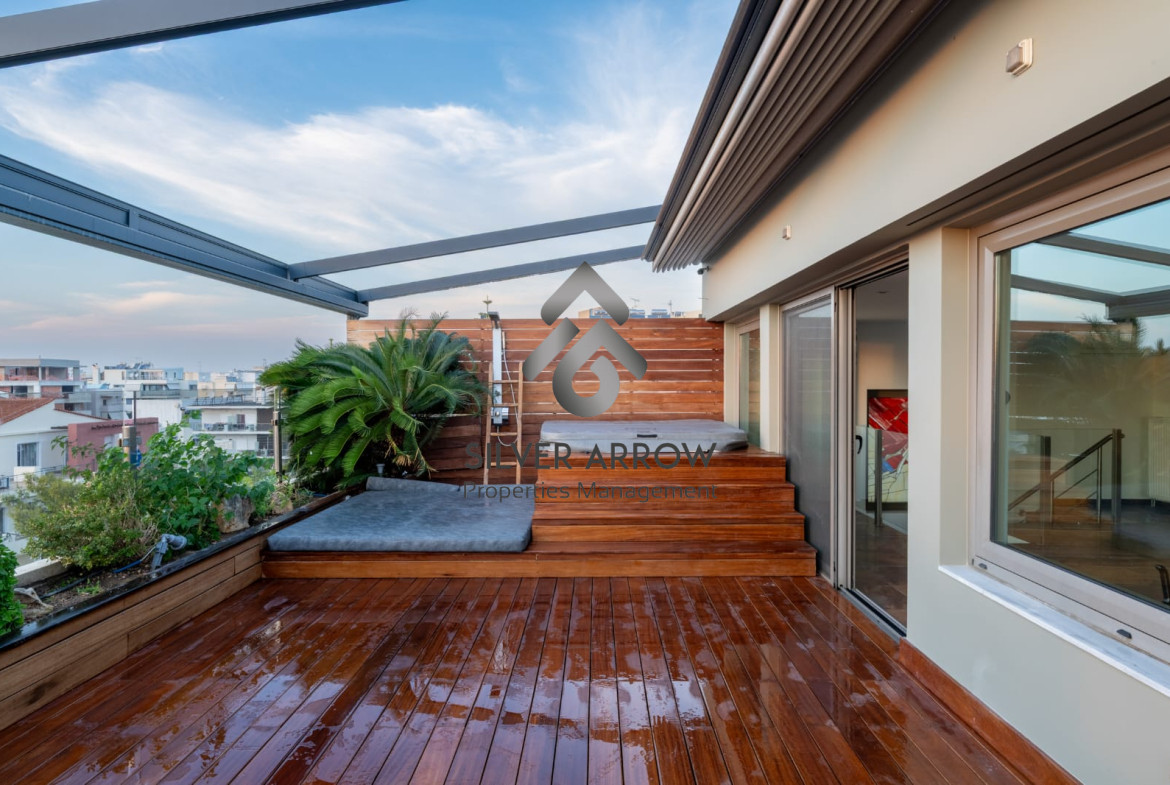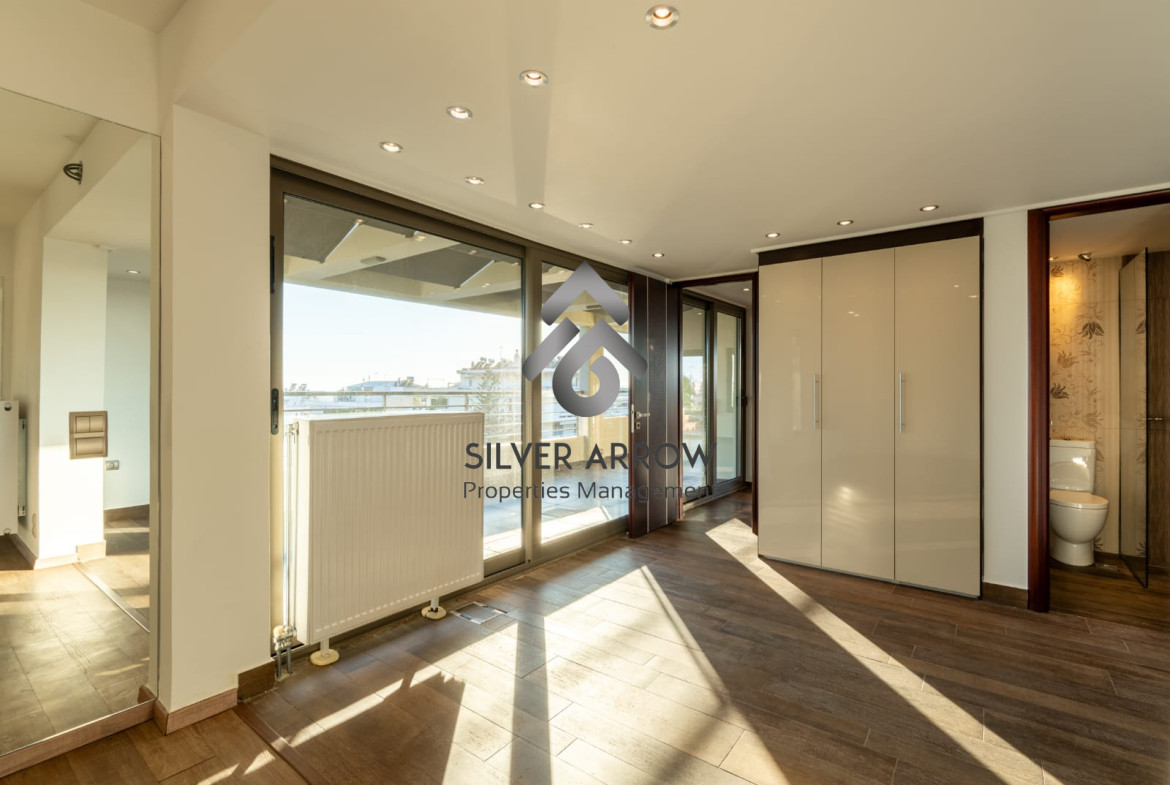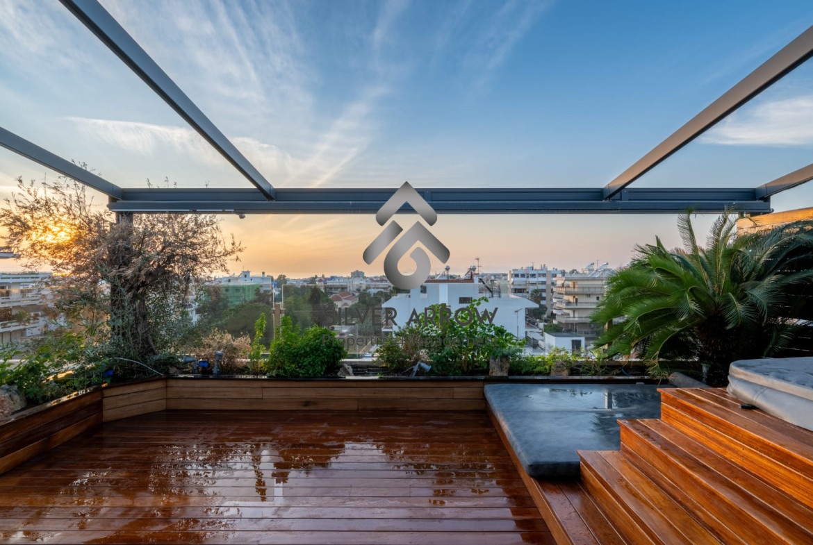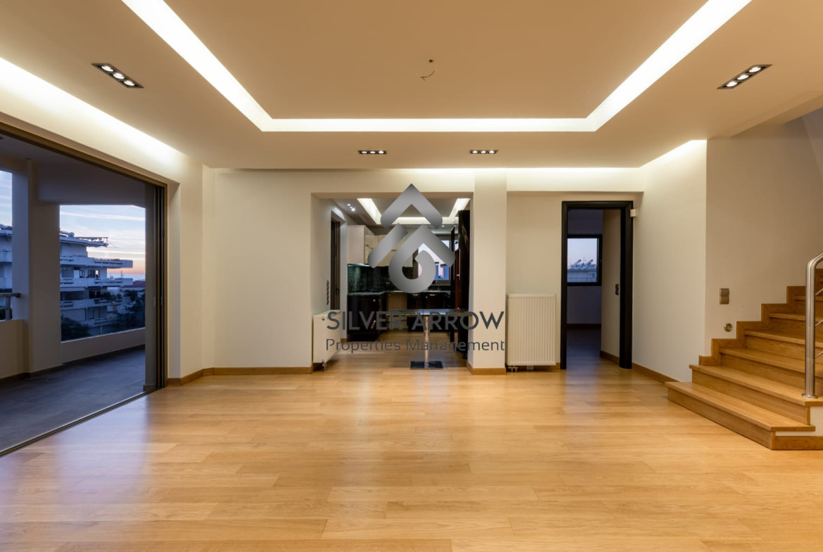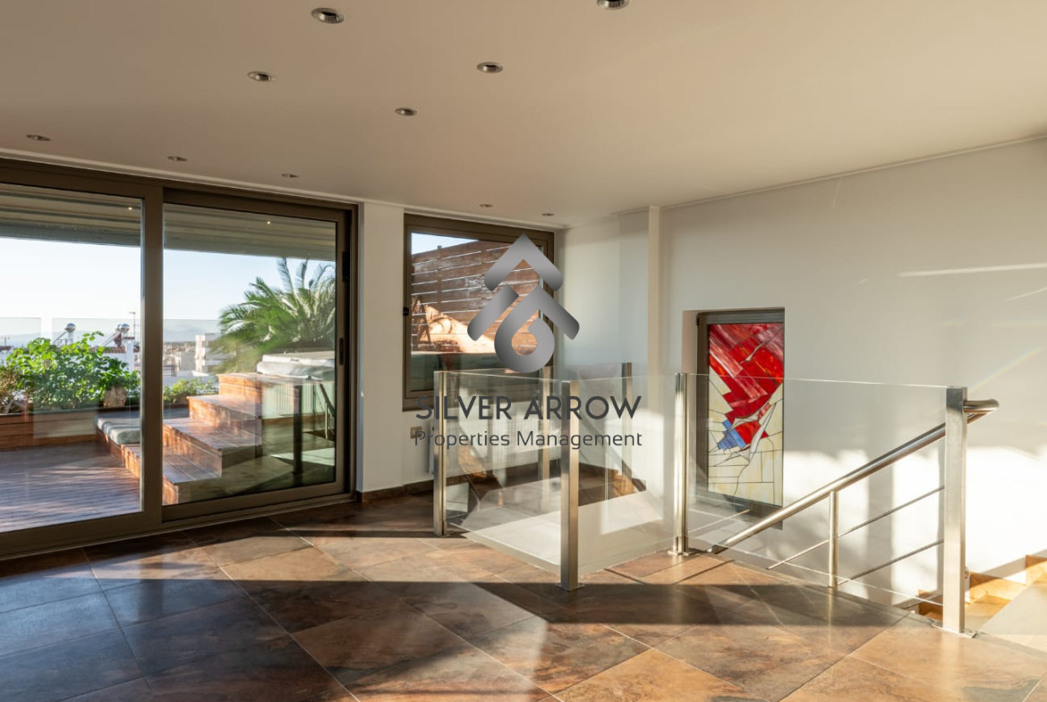 Luxurious maisonette in a residential area in the heart of Glyfada with sea view and close to all amenities, has an area of ​​227 sq m and is distributed over 2 levels, 3rd and 4th floor.